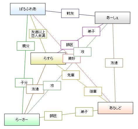 こんな感じ(ちょっと大きめの画像です。携帯閲覧の方はご注意を)に人間関係を表してくれる面白ツールです。